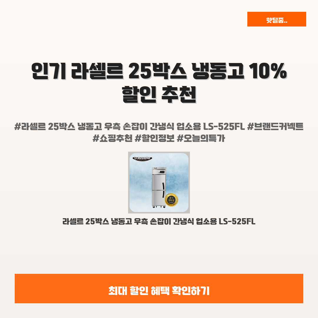 🛍️ 이 포스팅은 네이버 쇼핑 커넥트 활동의 일환으로,판매 발생 시 수수료를 제공받습니다.오늘 소개할 제품은 단연코,바로 라셀르 25박스 냉동고 우측 손잡이 간냉식 업소용 LS-525FL입니다!요즘 업소를 운영하시거나 음식 저장에 고민이 많으신가요?여러분이 찾고 있던 바로 그 냉동고가 지금 10% 할인 중입니다!이 제품은 대용량을 자랑하는 동시에, 효율적인 에너지 소비로 여러분의 경비도 아껴줄 수 있죠."이렇게 저렴하게 구매할 수 있다니!" 하는 만족감을 느끼실 수 있을 거예요.품질과 가성비를 모두 만족시키는 라셀르 25박스 냉동고로 여러분의 팝업이나 식당이 더욱 빛나길 바라요! 이번 기회를 놓치지 마세요!※ 이 제품은 제가 직접 경험하고 추천하는 상품입니다. 광고가 아닙니다!라셀르 25박스 냉동고 우..